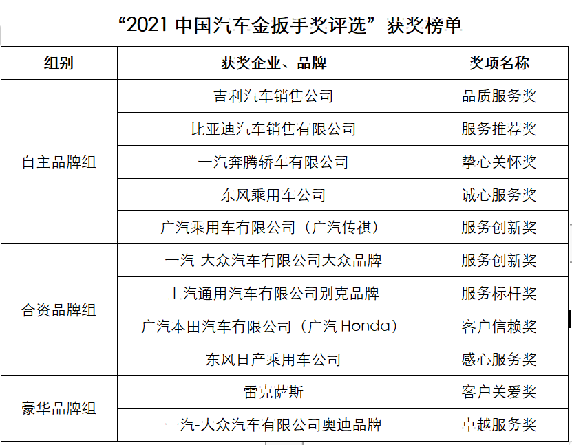 2021第十六屆中國汽車金扳手獎評選榜單揭曉