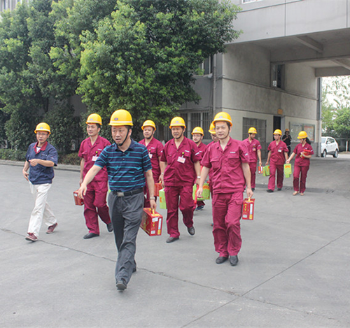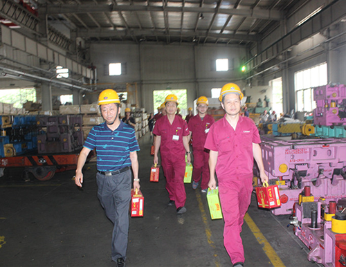 在安徽大洋倪峰副總經(jīng)理和李平總助的陪同下,陳勝部長(zhǎng)一行人給正在工作崗位上辛勤勞動(dòng)的一線人員送去降溫飲品。