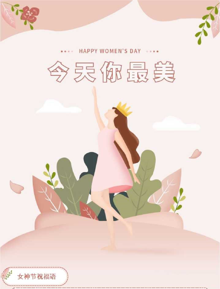這一生,我們要扮演的角色有很多,母親,女兒,妻子、 同事,女友。而此時(shí)此刻,在這個(gè)屬于我們的節(jié)日里,我 們要做溫柔的自己、灑脫的自己,光芒萬(wàn)丈獨(dú)一無(wú)二的自 己。希望不止今天,在以后的每一個(gè)日子里我們都是自己 的女王,都能成為更好的自己!