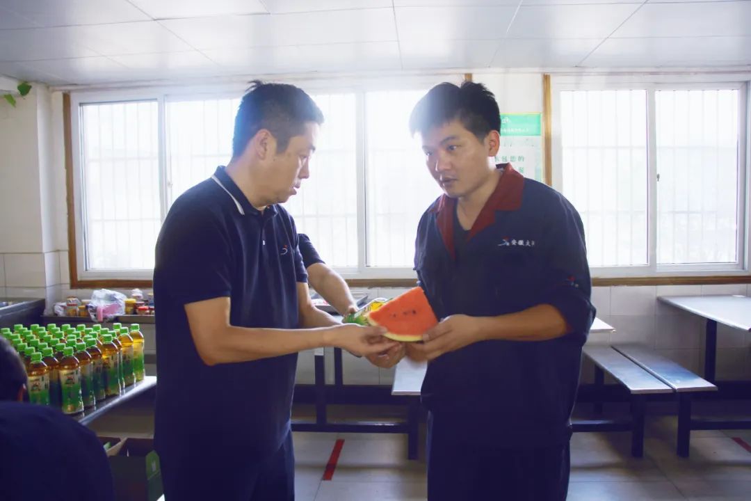 “大家辛苦了!”公司領(lǐng)導(dǎo)與一線職工親切交談,詳細(xì)了解各部門安全生產(chǎn)、防暑降溫情況,向他們?cè)诟邷靥鞖鈭?jiān)守崗位、辛勤付出表示感謝。并叮囑大家在工作中要提高安全意識(shí),做好安全防范,保障人身安全,團(tuán)結(jié)一心。